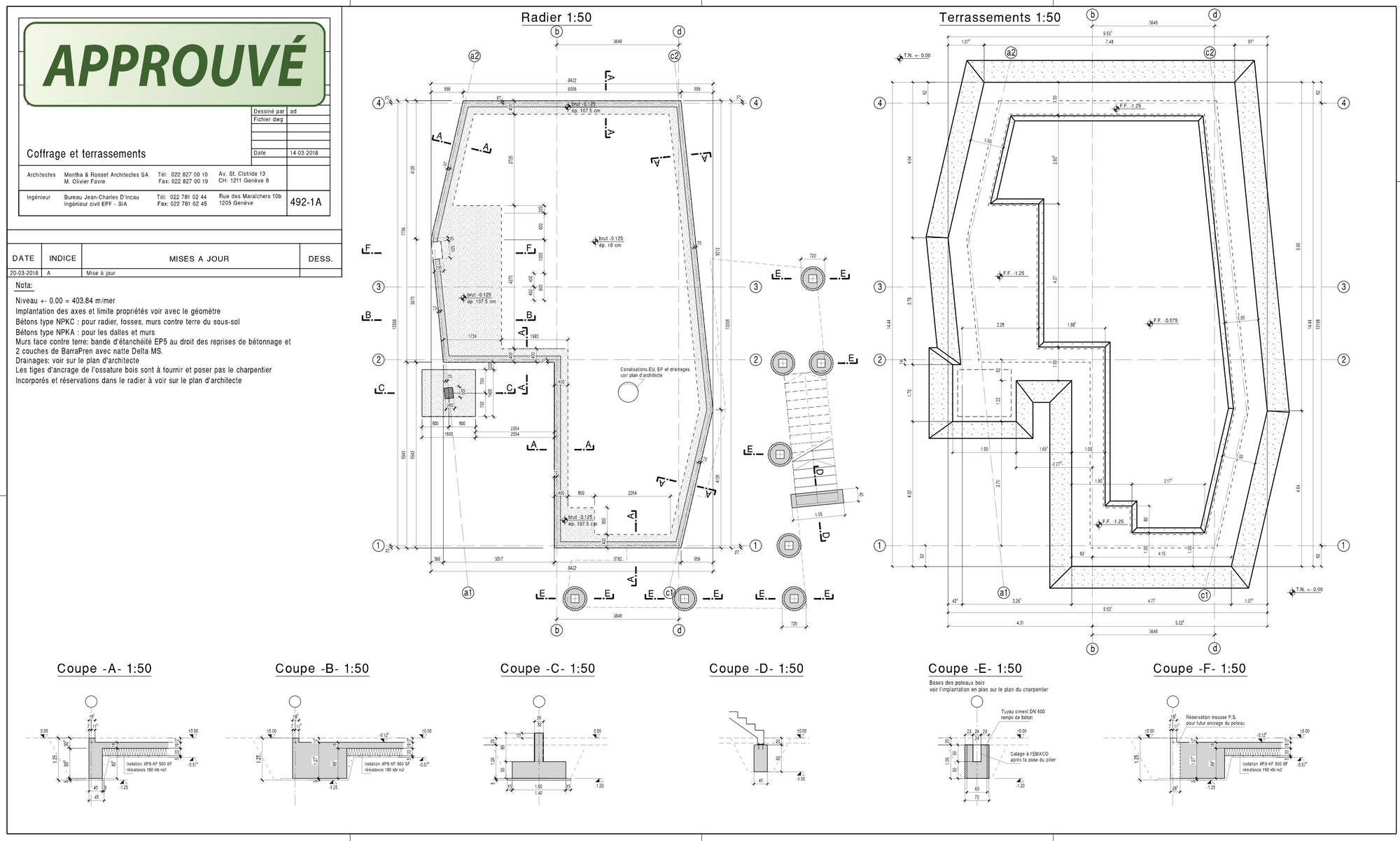 Création d'un arrêt TPG, élargissement d'un trottoir existant démolition des bordures et enrobés bitumineux et pose de bordures granits type TPG, raccordements de sac EP à réseau existant et pose d'enrobés bitumineux.